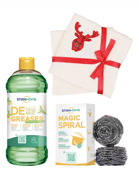 SPIRALI DISINCROSTANTI MULTISUPERFICIE conf. da 2 pz., SGRASSATORE CONCENTRATO MULTISUPERFICI E STOVIGLIE 750 ML e set di 2 lavettes fantasia non a scelta